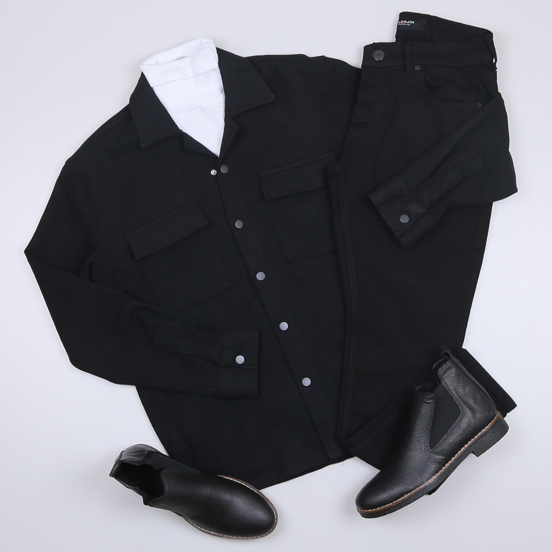 Siyah Kaşe Gömlek Boğazlı Body Pantolon Bot Kombin