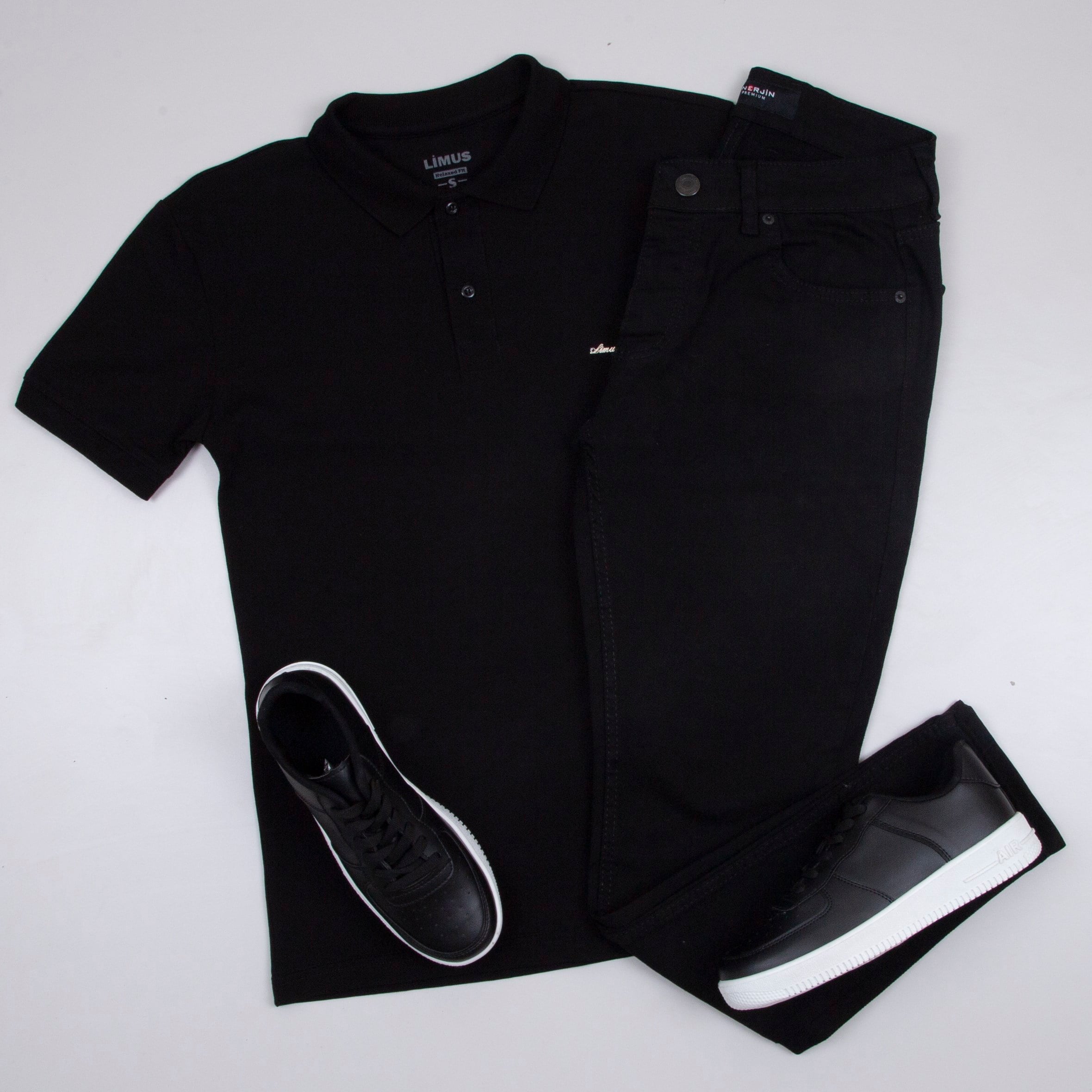 Siyah Polo Yaka Tişört Siyah Kot pantolon  ayakkabı Kombin