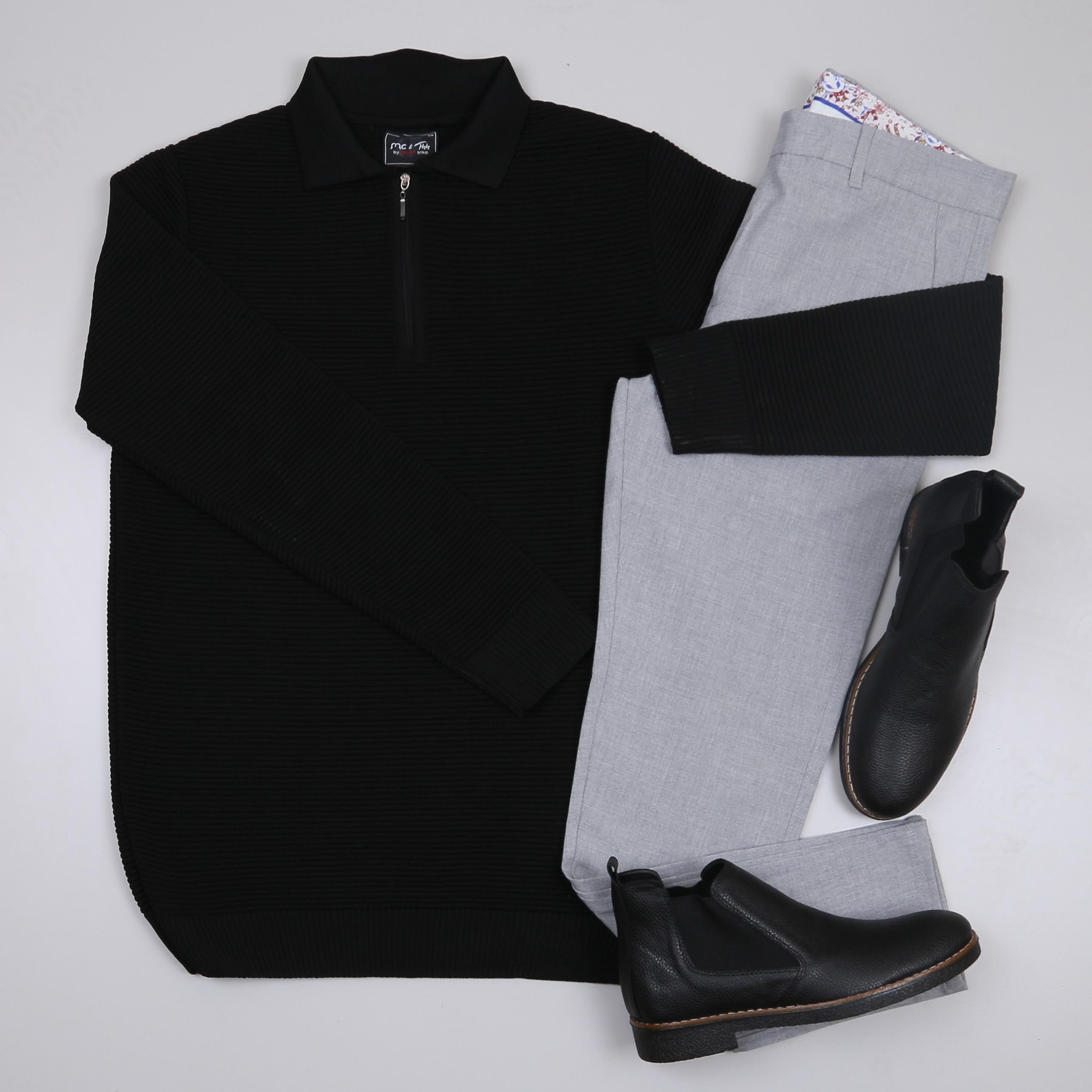 Siyah triko Kazak Gri  kumaş Pantolon