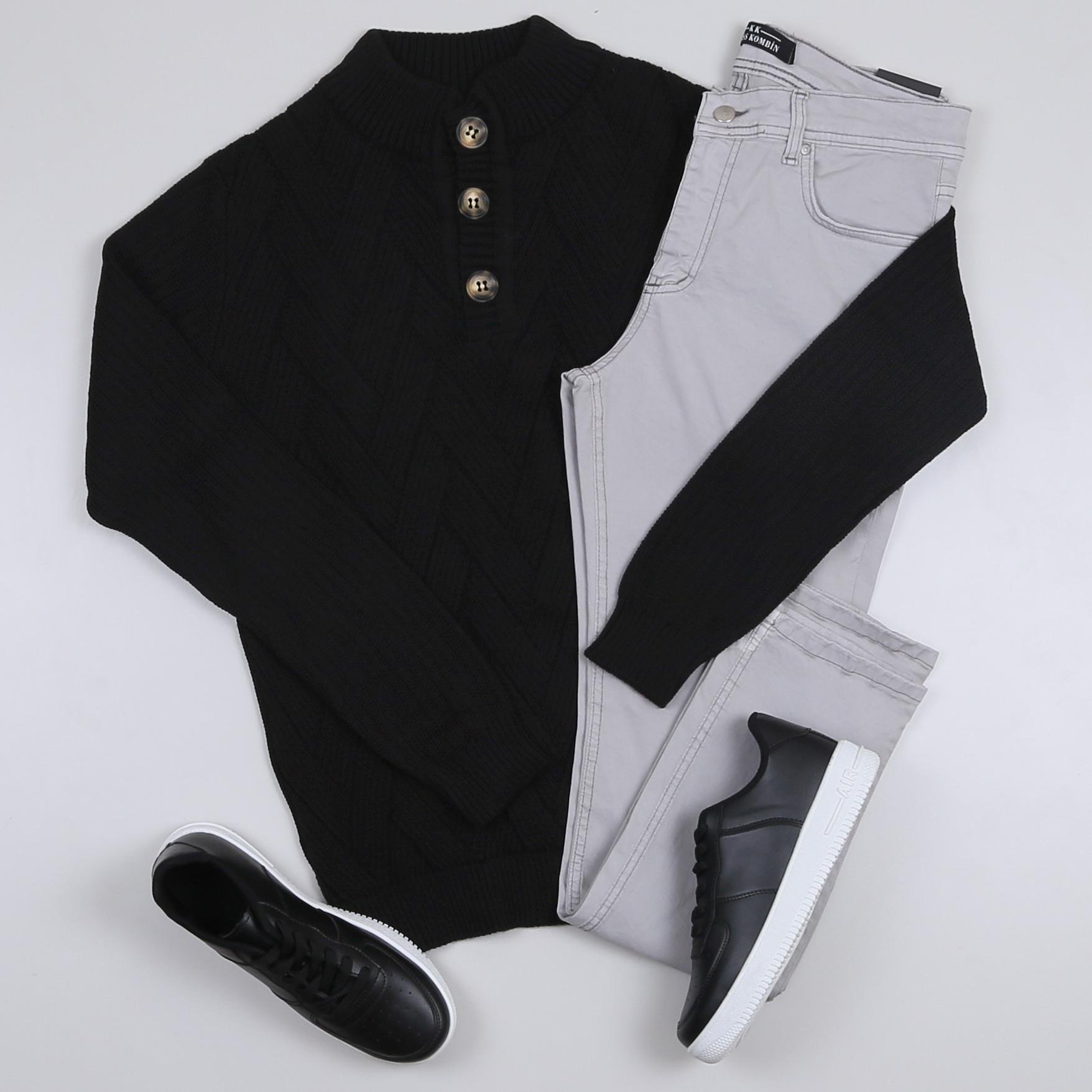Siyah Triko Kazak Kot Pantolon Ayakkabı Kombini