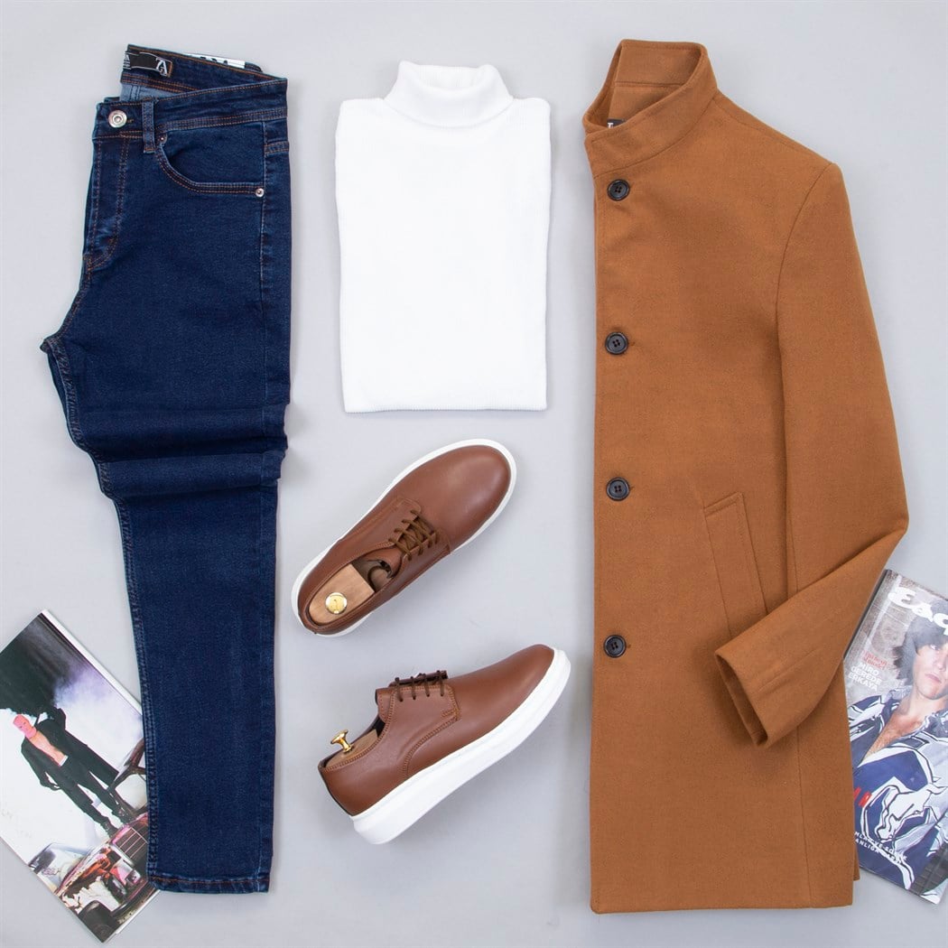 Kaban: Polyester: %80 Pamuk %20 Cepli Astarlı Slim Fittir. Kazak: Pamuk-Polyester Slim Fittir. Pantolon:Pamuk 98% Elastan 2% Full Likralı Dar Paça Slim Fit Normal Beldir. Ayakkabı: Poli Taban Terleme Koku Yapmayan İç Astarlı Kaymaz Tabandır.